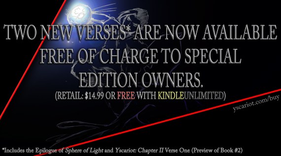 Just in time for the holidays! The standard edition of Yscariot: Sphere of Light is now available for purchase at the low price of $7.99!! In additional to having access to the entire original first novel, the eBook will come with readability and corrective updates whenever necessary.