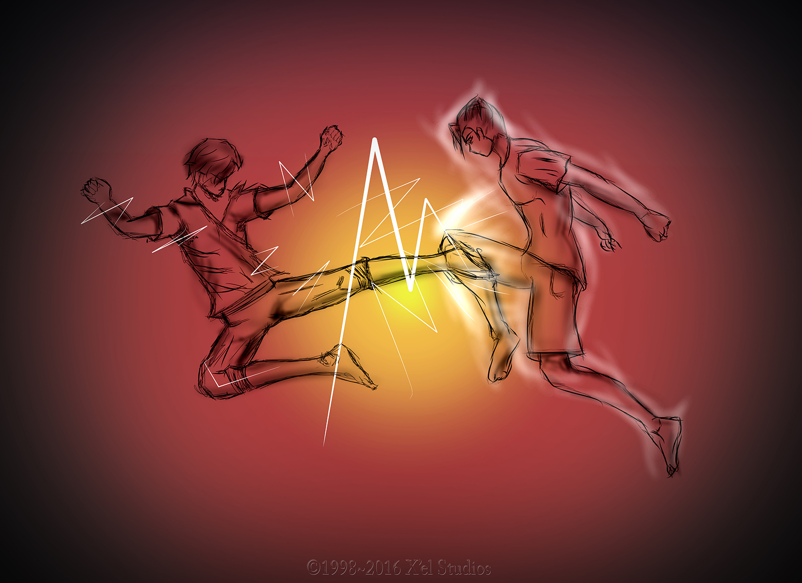 This is an image I made using a couple PC tools to get this idea out. Yscariot and Riu are not only cousins and future heroes of Earth, but they rival each other from. Whether it is besting each other in simple video games to testing out their new-found power, they find the fun in being number one.